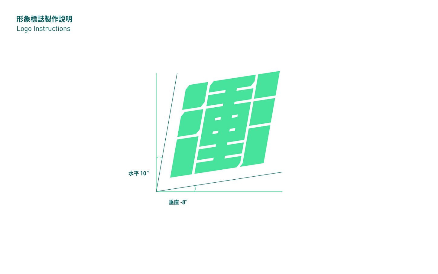 「衝」是這次的主視覺,「衝」的字體設計設定為黑體,以寬大的筆畫構成這個字,並將字腔設定的較為緊密,讓字體的量感充足,貫徹此套視覺的核心重點-力道,其次在筆畫中加入斜角,增加細節度與特徵性。最後再將衝勁和速度感以傾斜的方式來表現,而此套主視覺的傾斜設定為兩個維度的傾斜,而非一個維度,主要目的是讓速度感能更被強調,也讓字體的空間感更有變化,增加了這套視覺的辨識度。