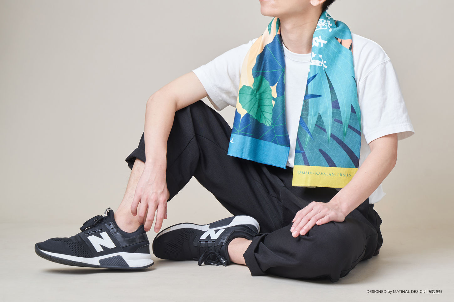 The Tamsui Kavalan Trail design project involved not only the creation of a guidebook and brochures but also the design of several peripheral products, including a poncho raincoat, postcards, and sports towels.