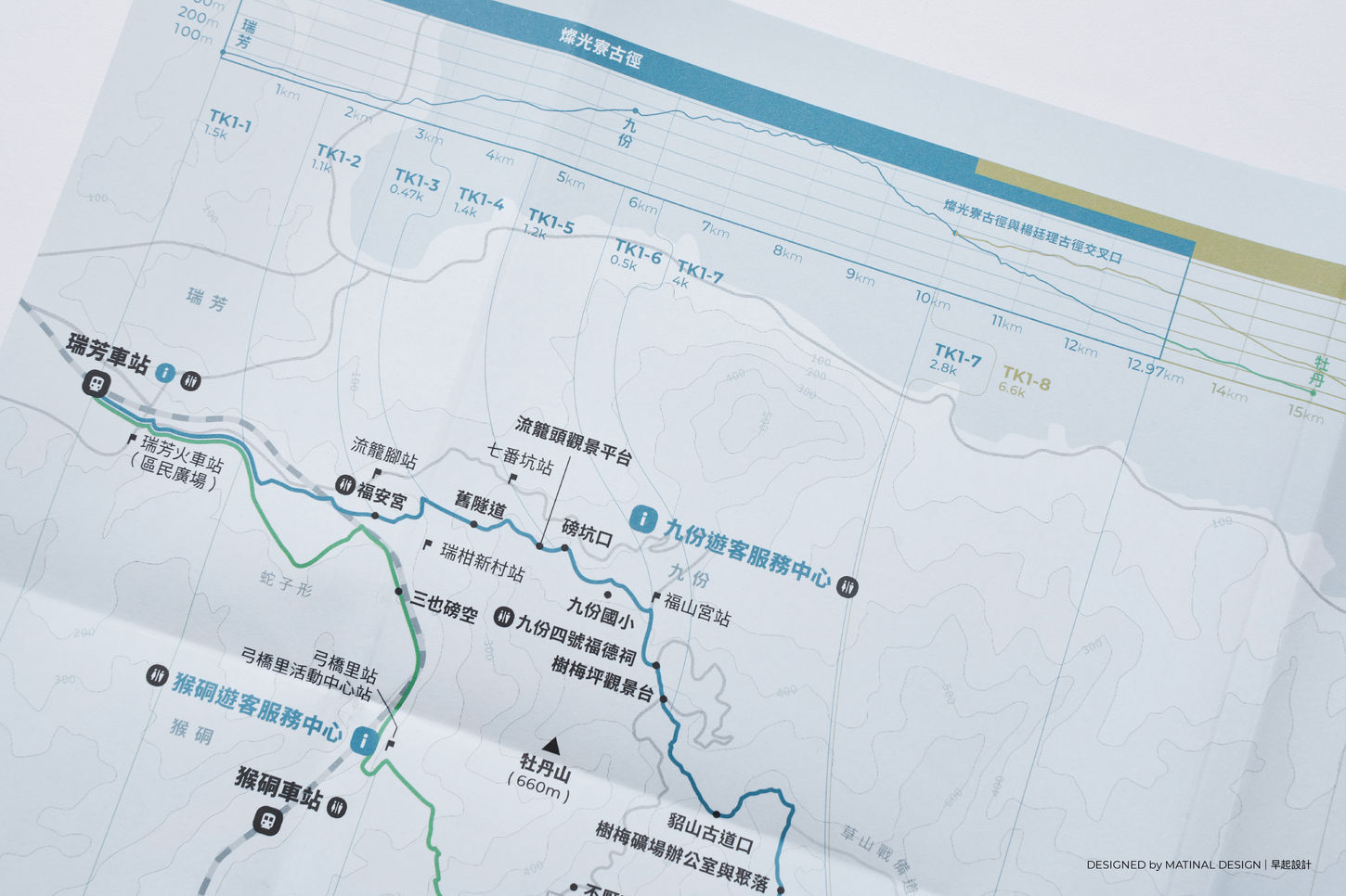 In collaboration with the New Taipei City Tourism and Travel Department, Matinal Design created a series of guidebooks for the Tamsui Kavalan Trail, a historic mountain path system. The first release, the Tamsui Kavalan Trail North Route Deluxe Guidebook, includes a book jacket, belly band, hiking maps, visualized historical and ecological information, and a stamp collection card.